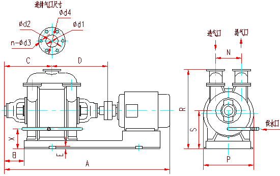| SK-6、SK-12、SK-20、SK-30、SK-42水环式真空泵及压缩机外形及安装尺寸图 |