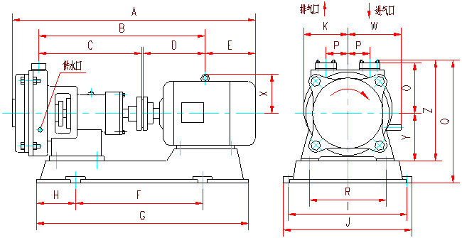 | SZB-4、SZB-8水环式真空泵外形及安装尺寸图 |